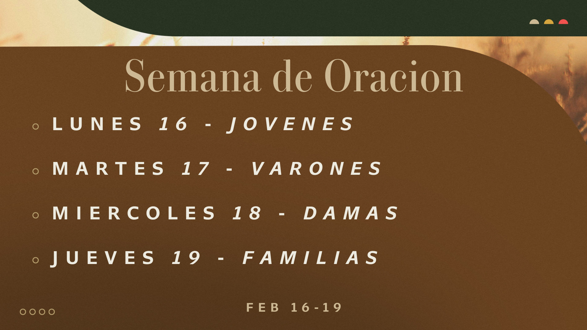 Este será un día dedicado a la oración, la lectura de la Palabra de Dios y a escuchar su voz. Reunámonos como una familia de fe, humillándonos ante el Señor y acercándonos a Él.